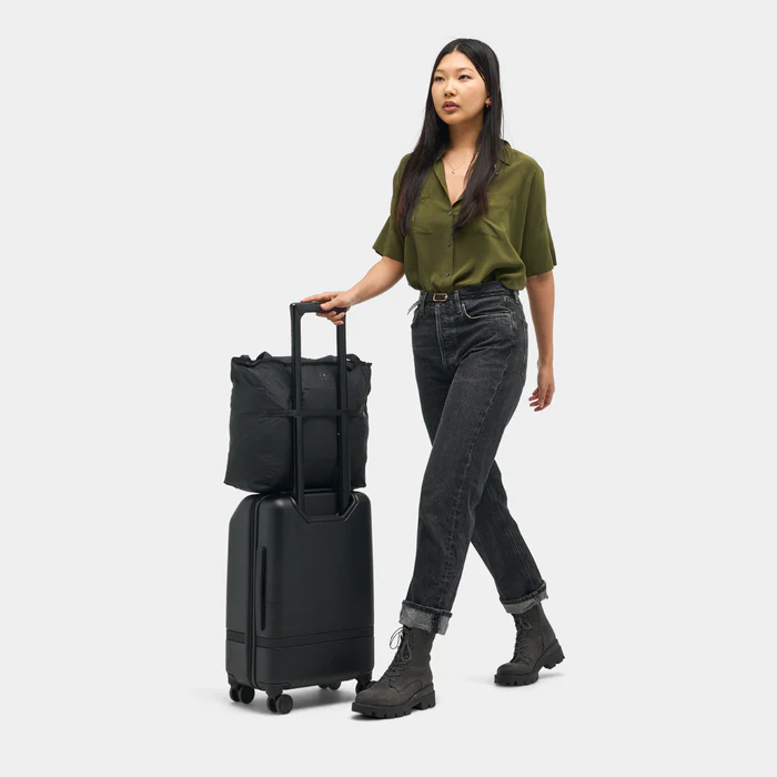 La bolsa plegable de 28 litros ocupa el mínimo espacio cuando no se usa, pero te ofrece el máximo espacio cuando lo necesitas. En el interior, incluye bolsillos para organizar tu equipaje y un bolsillo especial para una botella de agua. El exterior está hecho de un material duradero e impermeable. La correa de paso para equipaje se adapta perfectamente a nuestra maleta con ruedas o se pliega dentro de la funda con cremallera y se engancha a cualquier bolso con la presilla.